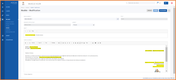 Dans ce cadre, utilisez les clips mis à disposition afin que le système alimente automatiquement les informations lors de la réalisation des actions de relance